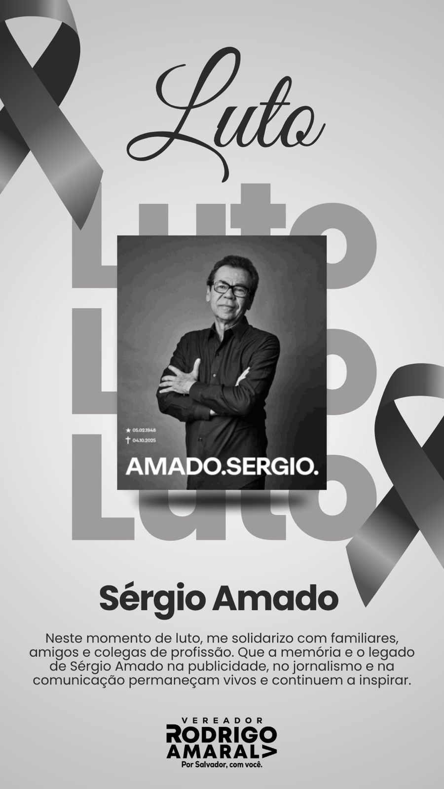 Ao lamentar a perda, Amaral destacou a importância do legado deixado por Amado. “Sérgio foi um profissional que elevou a publicidade brasileira a patamares de excelência mundial, sempre valorizando sua origem baiana. Sua partida é uma grande perda para a comunicação e para o país”, afirmou o parlamentar.